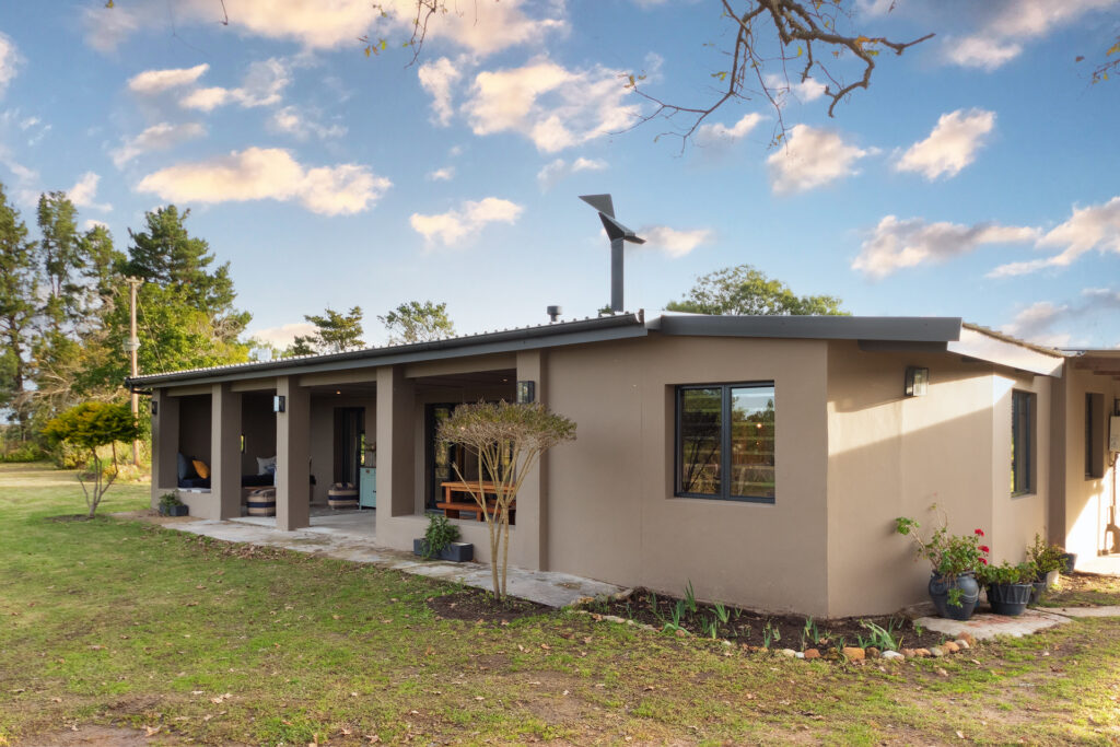 Balintore Guest Farm House, boasts a ‘house-length’ stoep (covered veranda) on its east side and a similarly expansive pergola patio on its western side. Guests are invited to relish striking sunrises on the stoep and captivating sunsets on the pergola patio. The stoep is equipped with a braai (barbecue), a dining table, and a lounge area.